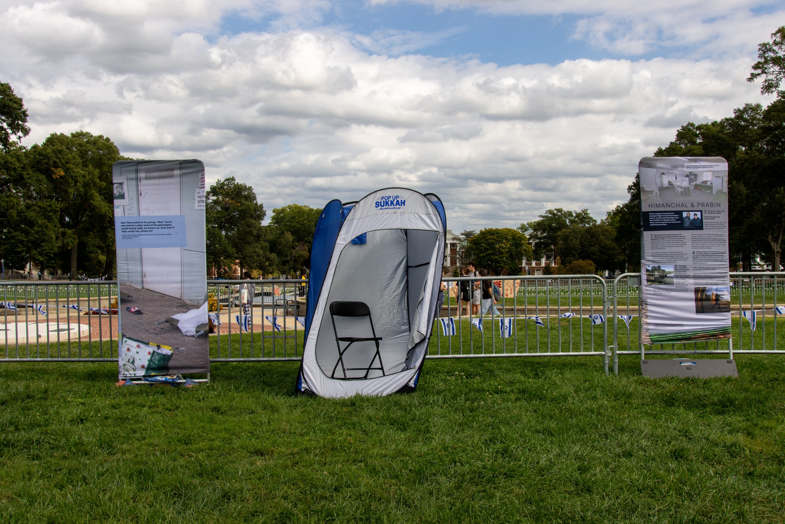 Organizers at Tuesday’s event wore Maryland Hillel shirts that said “Never Forget 10.7.2023” and handed out “Remember Oct. 7” stickers. The anniversary coincided with Sukkot, a week-long Jewish holiday, and featured a pop-up sukkah for students to celebrate.