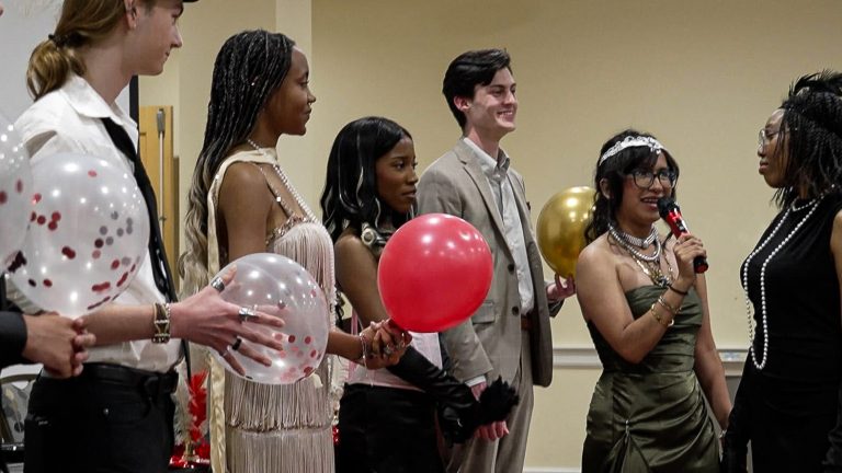 The event brought together students dressed in flapper dresses and stylish suits, adorned with pearls or feathers in Stamp Student Union’s Grand Ballroom.