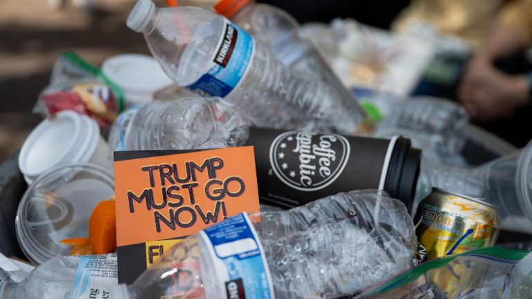 Nearly 1,500 Prince George’s County community members gathered along five miles of Route 1 to protest President Donald Trump and advocate for democracy.