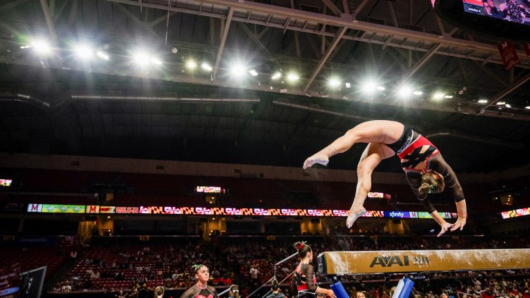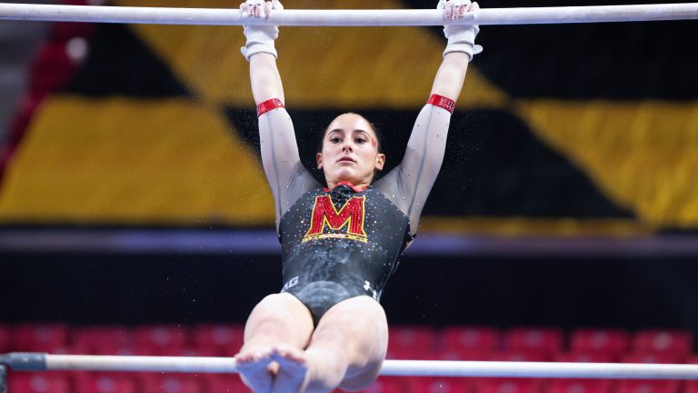 Maryland gymnastics bars unit’s season-high score leads to win at Maryland Quad meet The Terps scored 196.175 in its final regular season contest, to defeat Towson, George Washington and Yale at the Maryland Quad Meet Trevor Gomes March 16, 2025
