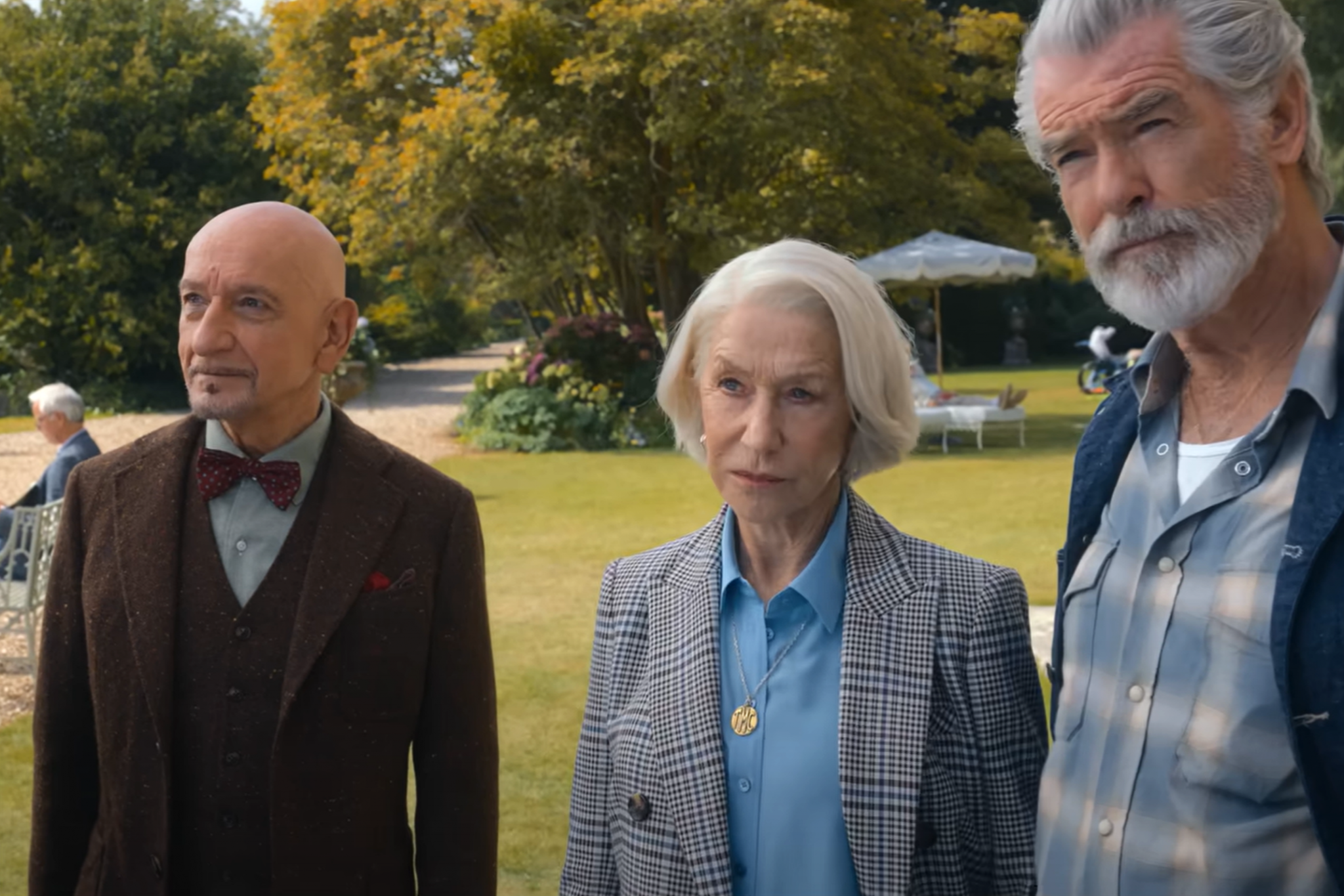 Brosnan and Kingsley’s characters ease even the heaviest moments with their comedic prowess. In one scene, the duo lure the chief investigator on the murder case to the senior living facility, where Kingsley’s character uses his expertise as a retired psychiatrist to transform Ron’s apartment, played by Brosnan, into a picture of senile chaos.