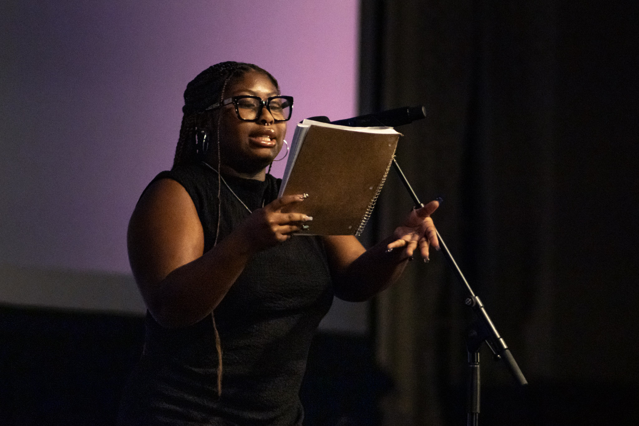 African dance team Diazporić performs at the Homecoming Juke Joint at Stamp Student Union on Oct. 29, 2025. The annual showcase highlights student artistic abilities and fosters community pride. (Faith Bissen/The Diamondback)Jodi Aryee performs at the Homecoming Juke Joint at Stamp Student Union on Oct. 29, 2025. (Faith Bissen/The Diamondback)