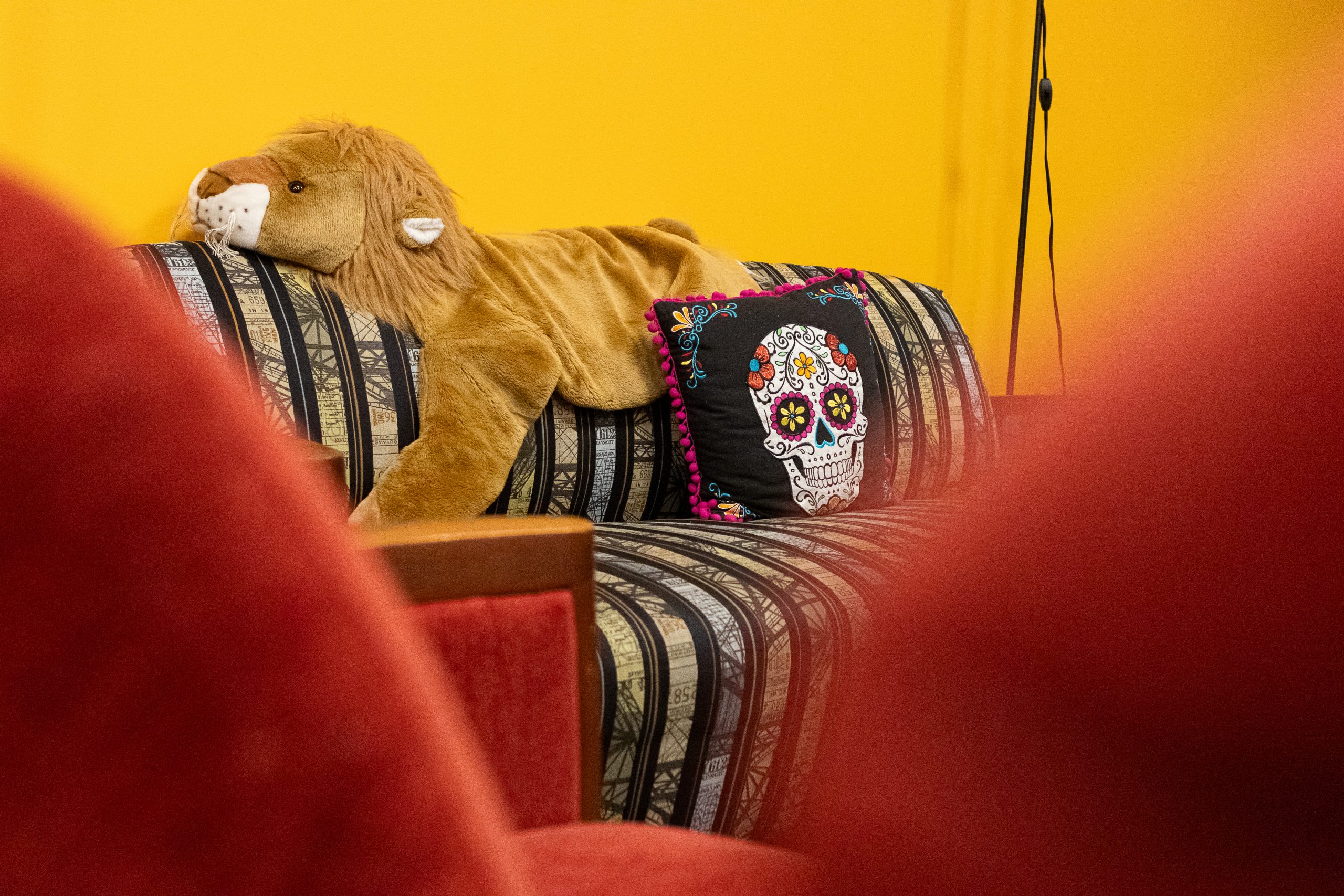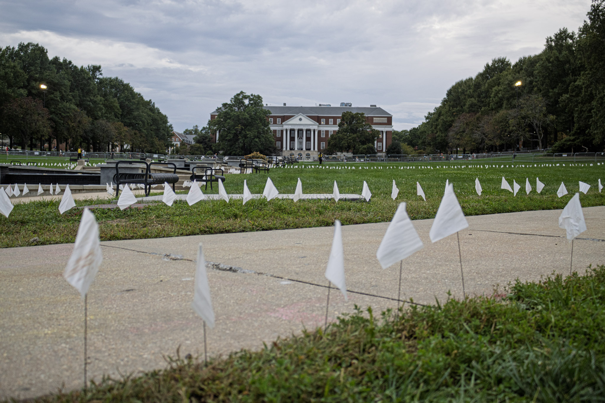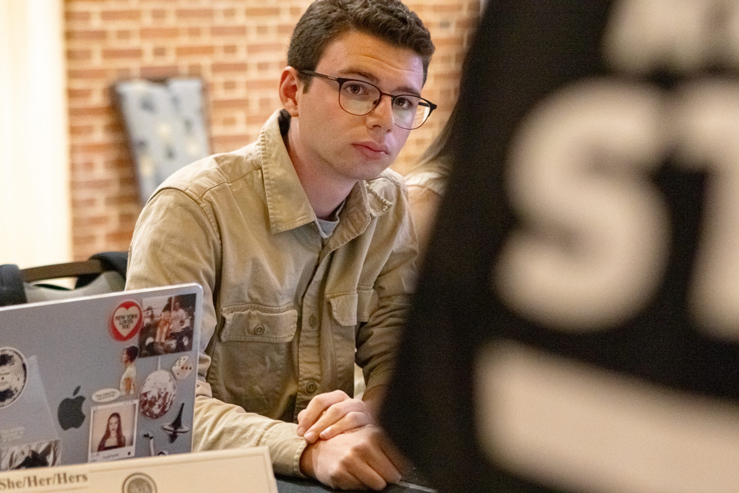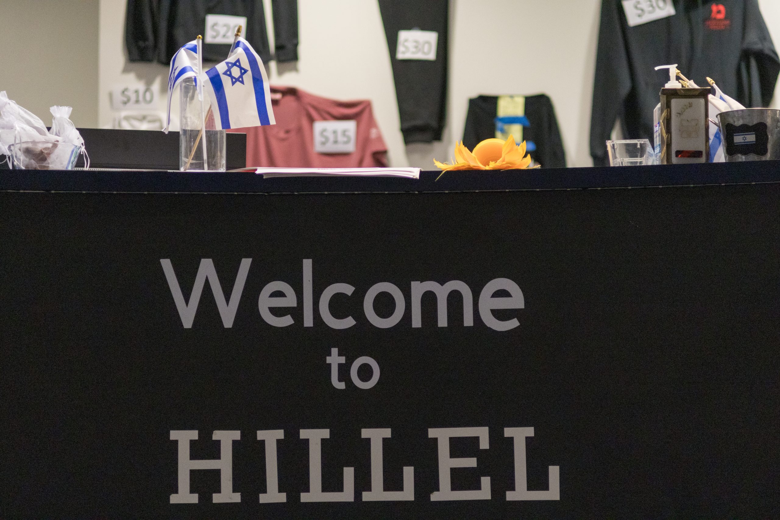 Alex Mullin, a junior mechanical engineering major, wears a yellow ribbon to support the return of the hostages taken by Hamas, outside of the Memorial Chapel on Oct. 6, 2025. (Sam Cohen/The Diamondback)