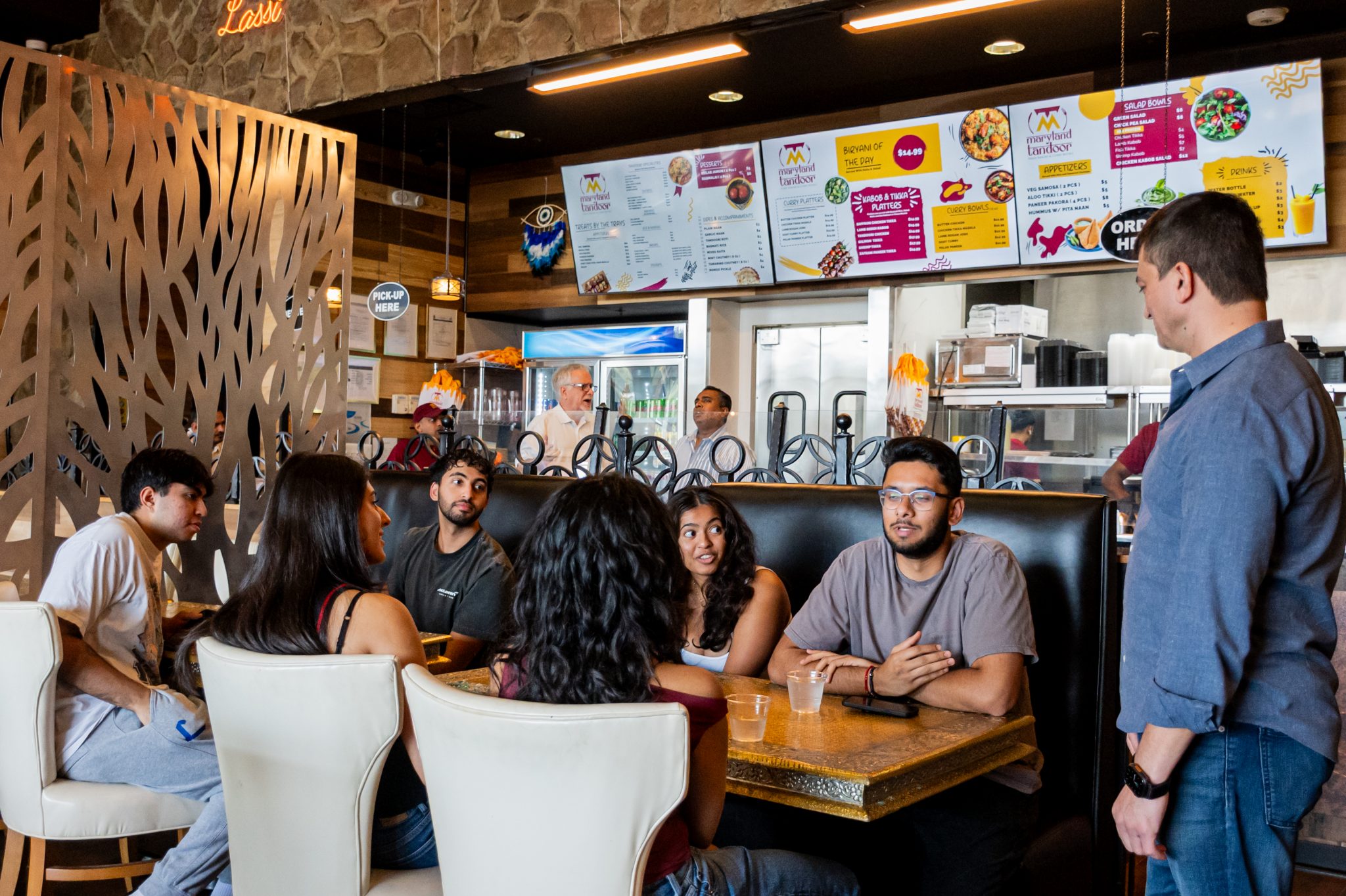 Community members sit at tables inside of Maryland Tandoor on Sept. 22, 2025. (Gurnoor Sodhi/The Diamondback)