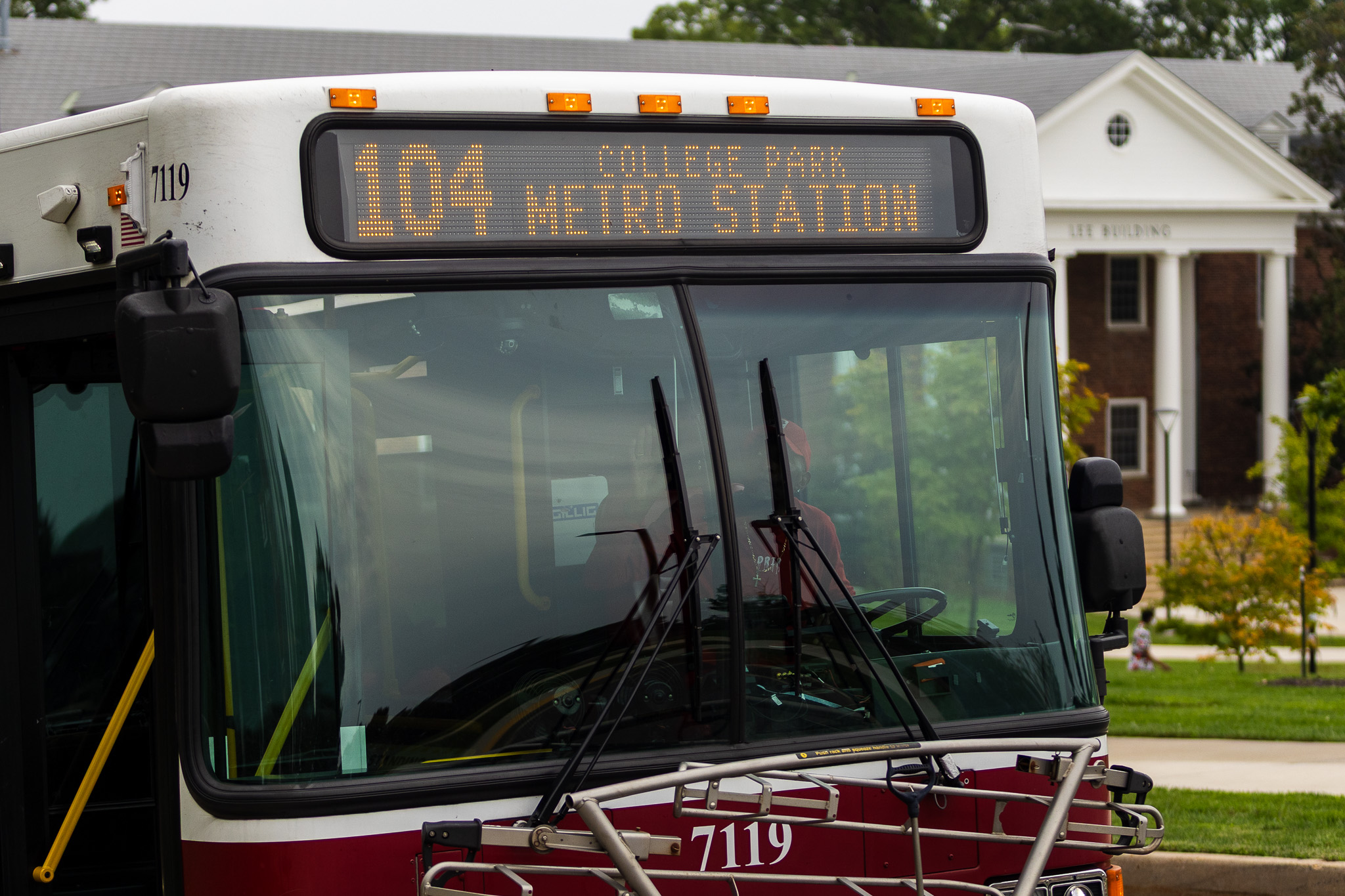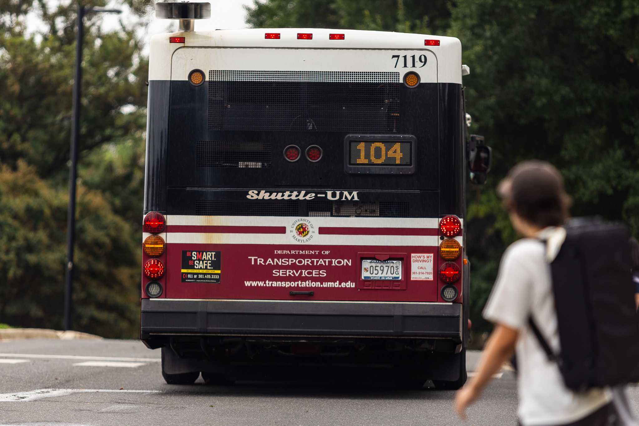 The front of a Shuttle-UM bus on Sept. 24, 2025. (Will Swearingen/The Diamondback)