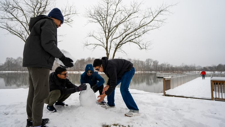 Students built snowmen, threw snowballs at each other, fished and more during the University of Maryland's snow day on Wednesday.